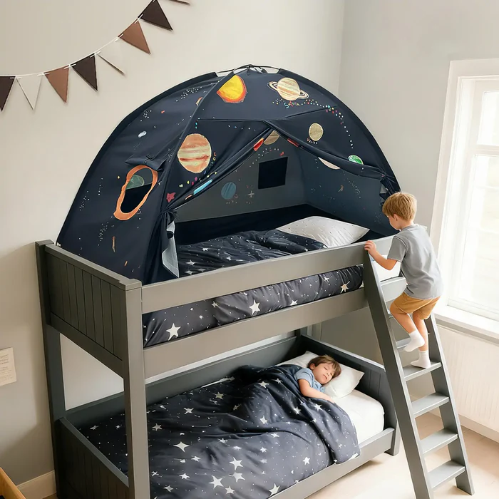 Watch little explorers claim their cosmic kingdom! This instant-transform tent becomes either a starry sleep canopy or daytime adventure fort, nurturing imagination ✨, rest 🌙, and intergalactic dreams 🌠—all in one magical space.