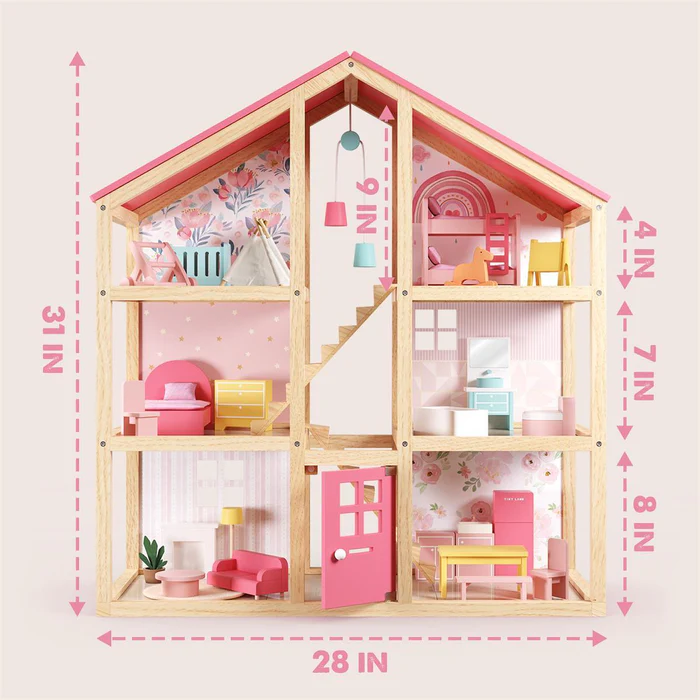 🏠 Creative Pretend Play — Wooden Dollhouse for Girls
